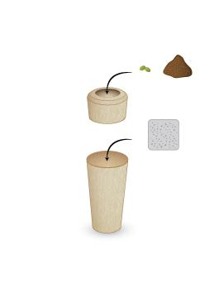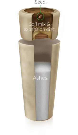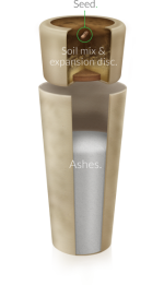 Den består av två kapslar, en för askan och en för jord och frö.
